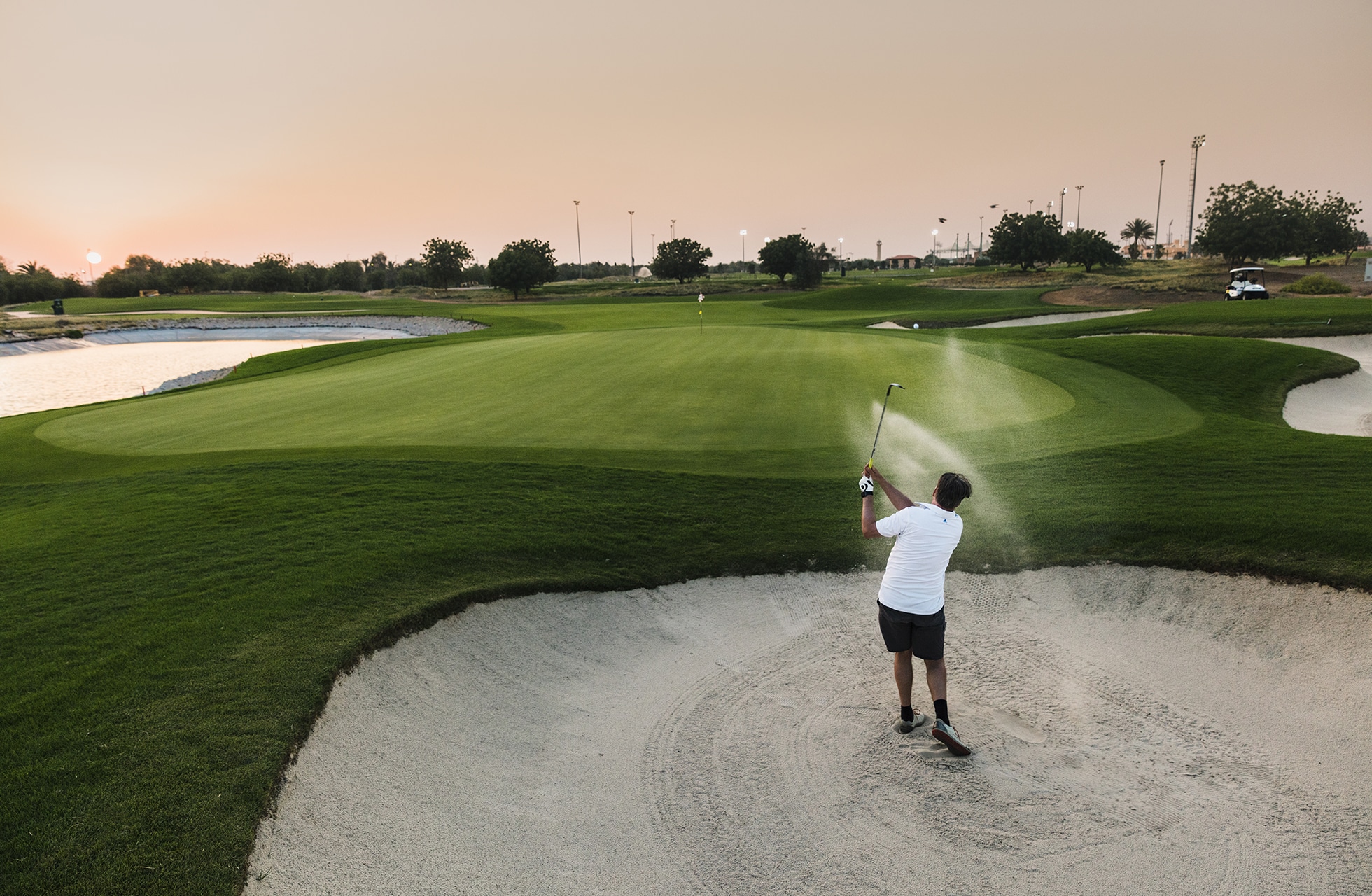 Al Ains golfbane er helt fantastisk. De første 9 huller er beliggende i midten af Al Ains gigantiske væddeløbsbane, og her er så rigeligt plads til ni huller i fuld længde. De sidste ni huller er beliggende udenfor selve væddeløbsbanen, og er oplyste, så det er muligt, at spille golf til langt ud på aftenen. Det er en fornøjelse, at spille på en bane, hvor der satses på kvalitet. I det ellers så golde landskab, opleves fairways og greenen mere grøn end grønt. På de svagt bølgende greens, ruller bolden hurtigt og jævnt. Slår man et godt putt, så holder bolden også den valgte linie mod hullet. Buggies (indgår i prisen), må kun kører på fairways, eftersom græsset i roughen, er noget mere sart, end fairwaygræsset. På Al Ain findes mange spændende golfhuller, som f.eks. 16. hul, hvor der er vand hele vejen langs højre side. I De Forenede Emirater, har de en forkærlighed for alt, hvad der er længst og størst. Det er derfor ikke så mærkeligt, at det 10. hul med sine 617 meter, er det længste par 5 hul i hele landet.