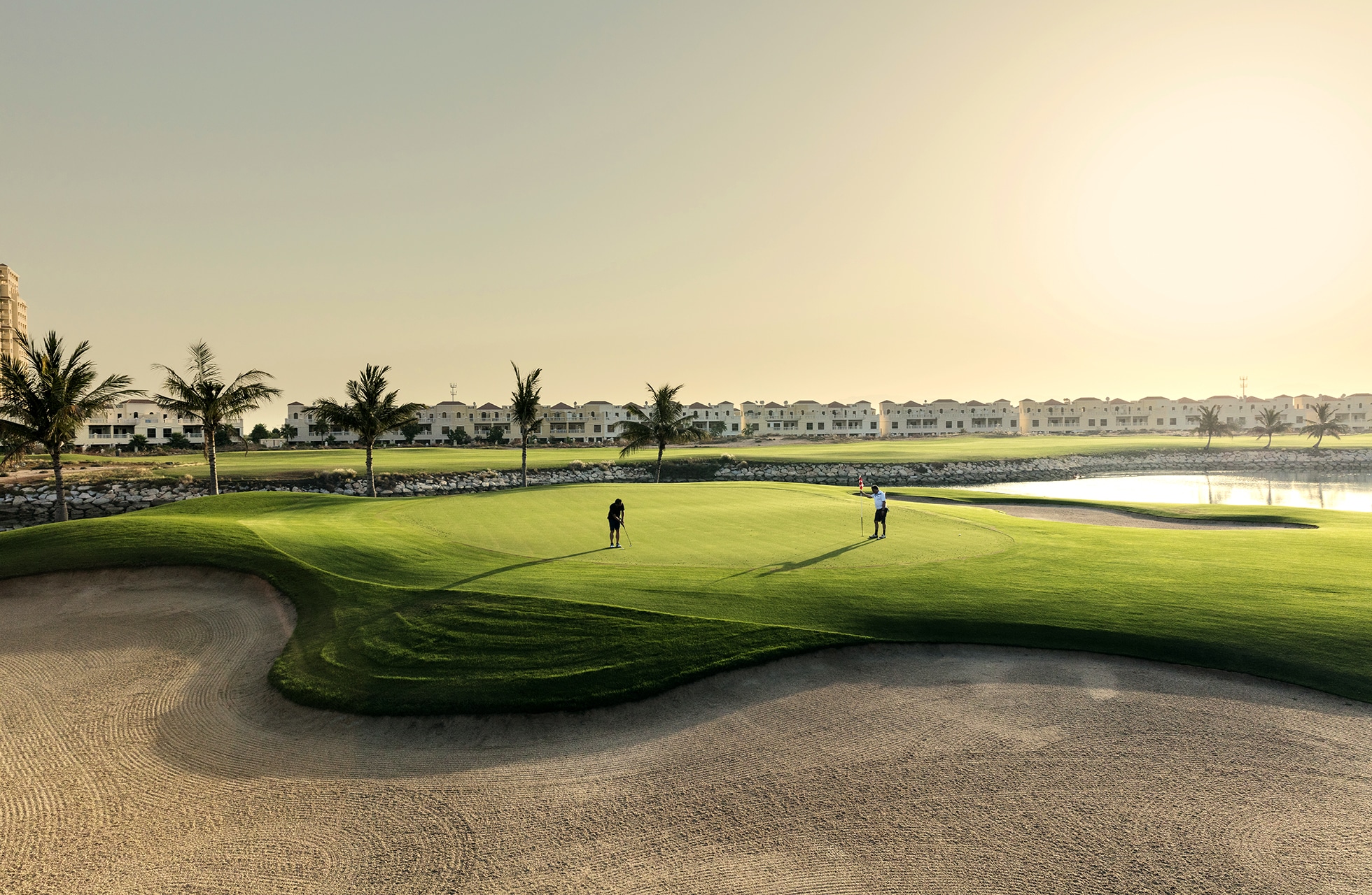 Når du vælger golfrejse til Al Hamra med Golf Plaisir, så bor du på det 5-stjernede Doubletree by Hilton Resort & Spa Marjan Island, som ligger ude på en af de kunstige halvøer, som går ud i den Persiske Bugt. Her ligger man i første parket med en privat hvidkornet sandstrand med masser af mulighed for vandsport. Al Hamra Golf Club ligger ca. 5 min kørsel fra hotellet og er en smuk parkbane med design af Peter Harradine. I bedste britiske stil har Harradine skabt en bane med 9 huller, som tager dig væk fra klubhuset og 9 huller, som tager dig tilbage igen.