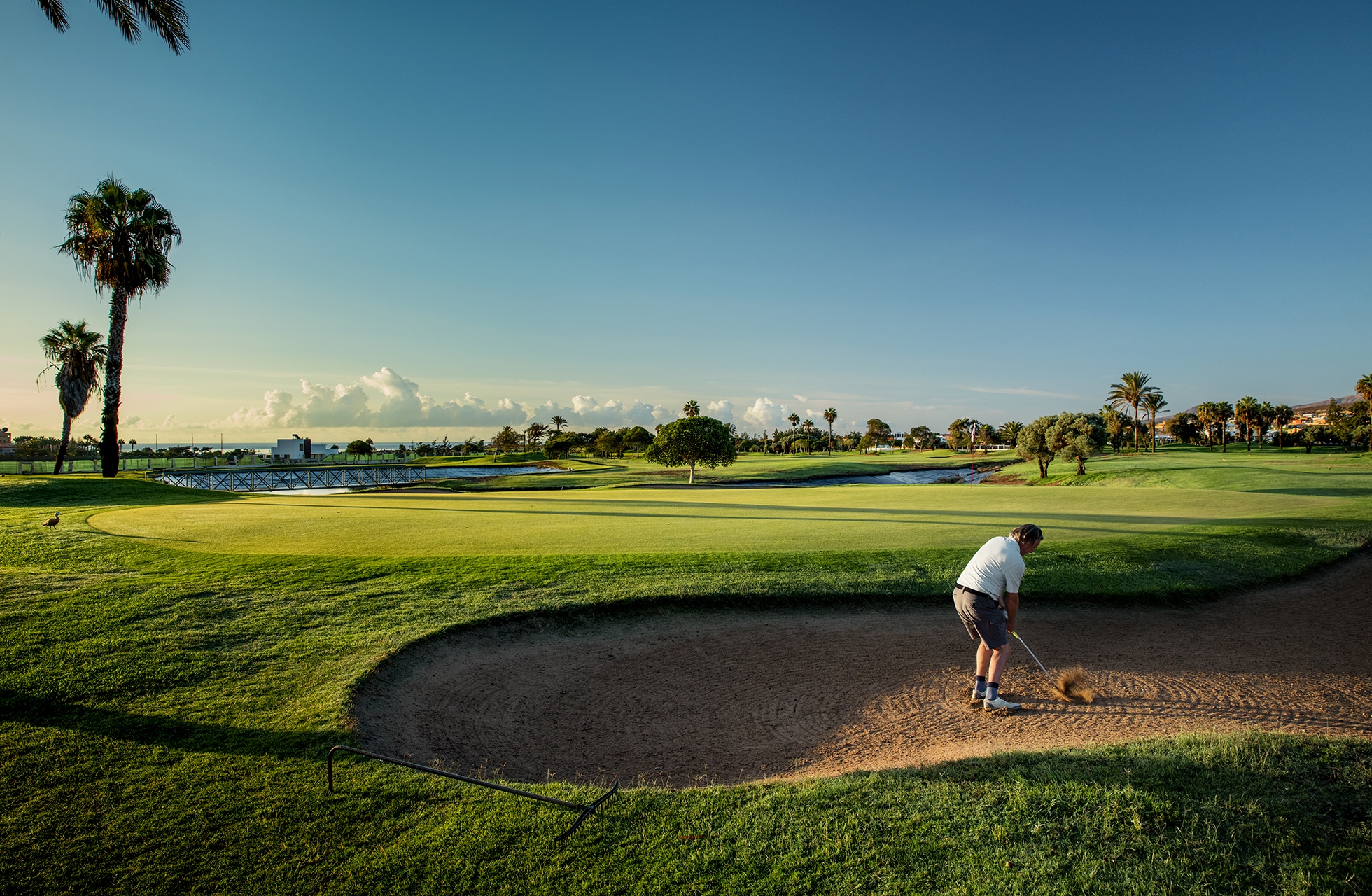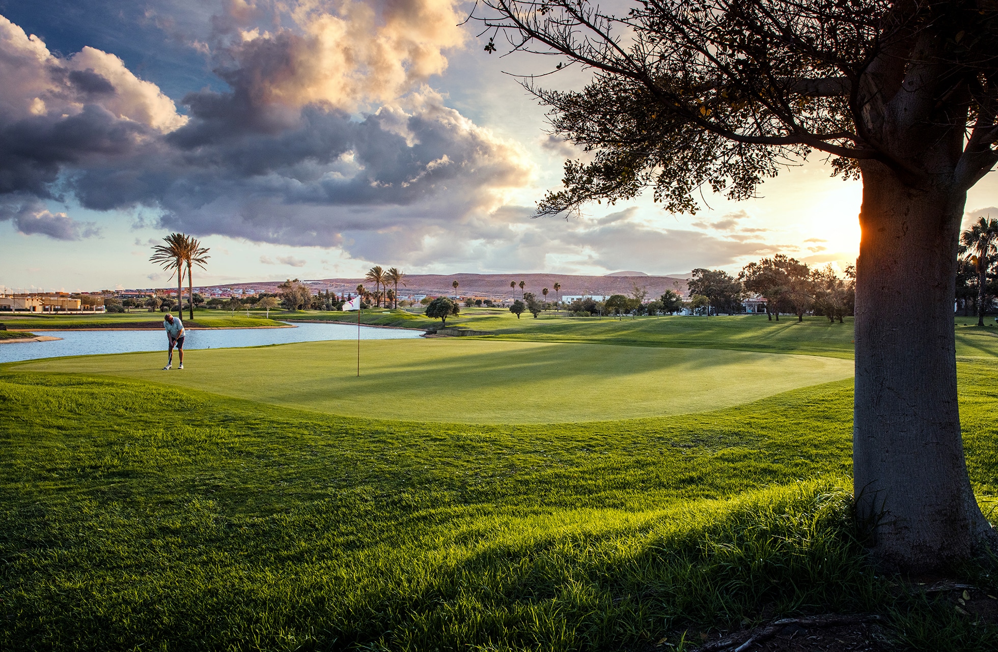 Ved ankomsten til Fuerteventura Golf, mødes I af det flotte hotel, som er bygget i klassisk haciendastil. I den smukke hotelbygning ligger også klubhuset og restauranten. Selvom Fuerteventura Golf ligger mere eller mindre som nabo til Salinas Golf, så har banerne helt forskellig karakter. Fuerteventura Golf er en klassisk golfbane, hvor fairways omkranses af palmer, og banen har relativt små greens. Det gælder om, at holde tungen lige i munden allerede på første hul, et kort par 4 hul, med en bæk som krydser fairway, og en godt beskyttet green. Spil klogt fra tee, for at undgå bækken og fairwaybunkerne. Strategisk spil gælder faktisk over hele banen. Der findes doglegs, hvor man kan satse og vinde en del, men det kan blive dyrt købte meter, hvis man slår out-of-bounds. Fuerteventura er en flad bane, som er let at gå, lige på nær den hårde bakke op til hul 17. Selvom vi klassificerer både Fuerteventura og Salinas som feriegolfanlæg, så er det ikke dårlige baner. Fuerteventura Golf var vært for Europa touren 2001 og da sluttede Golf Plaisirs nuværende operative chef Mattias Damberg på samme plads, som Henrik Stenson, dog langt fra toppen med 6 over par.