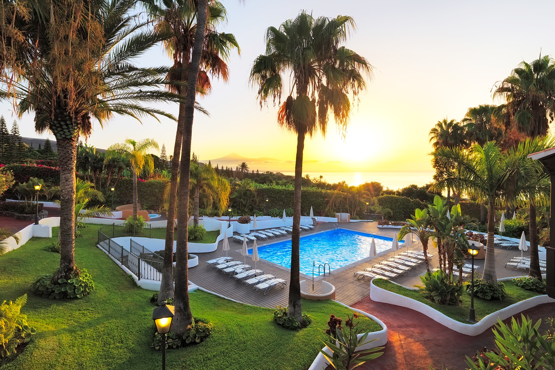 Jardin Tecina er spændende og romantisk. Vil du slappe af i musklerne efter en god dag på golfbanen kan du vælge mellem tre pools, som er opvarmede fra november-april. Du kan også parkere i en solstol og nyde en læskende drik fra en af hotellets barer for derefter at sætte dig til bords i en af restauranterne – måske nede ved stranden på Club Laurel med bar, á la carte restaurant og saltvandspool.